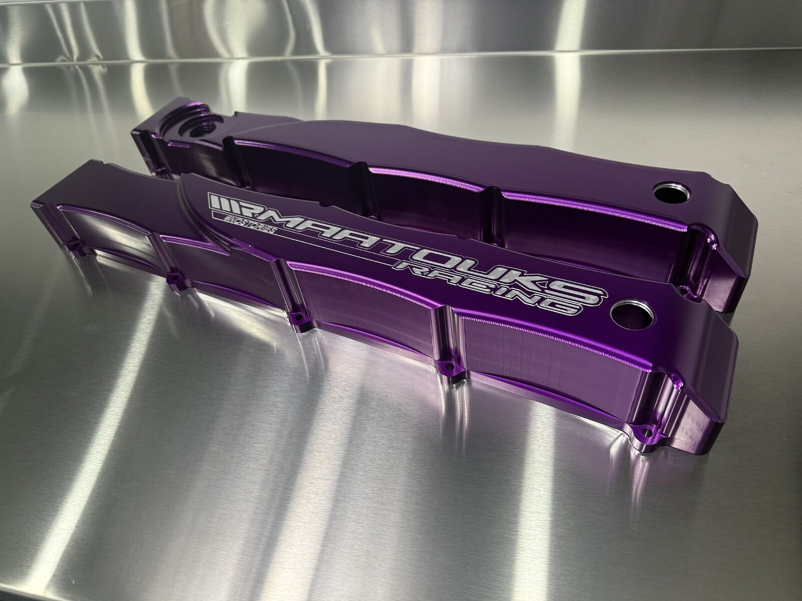 Sold as a pair, these anodized intake and exhaust cam covers have been created with a slimmer profile than the factory dimensions. Featuring enhanced oil control baffling tunnels that effectively separate air and oil to minimize blow-by. Additionally, the set includes an aluminium baffle plate for improved performance, -12 ORB port to be used as a breather. It has a custom gasket and features a factory thread for the oil cap.