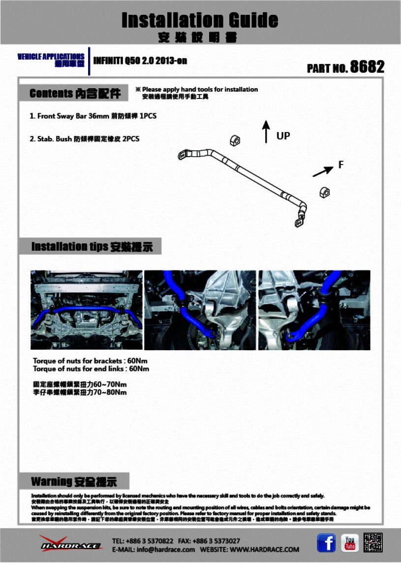 Sway Bar made with CR-MO seamless steel alloy. High rigidity and hi-tensile help reduce body roll and neutralize under or oversteering, keep your car flat in turns instead of leaning over to one side