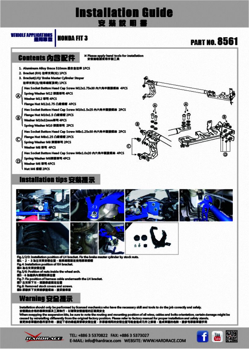 HARDRACE is proud to announce the new front strut bar for HONDA FIT GK. The strut bars are designed to tie the tops of your struts together, to improves acceleration, braking and chassis rigidity.