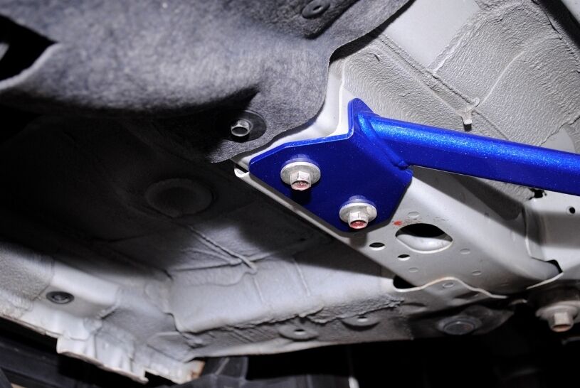 HARDRACE Front Lower Brace are designed to stiffen up the chassis and reduce vehicle chassis flex. This will increase the rigidity of your car during high speed driving and hard cornering. This is why HARDRACE Front Lower Brace can maximizes the performance of the suspension and brings better handling feeling and quicker response.