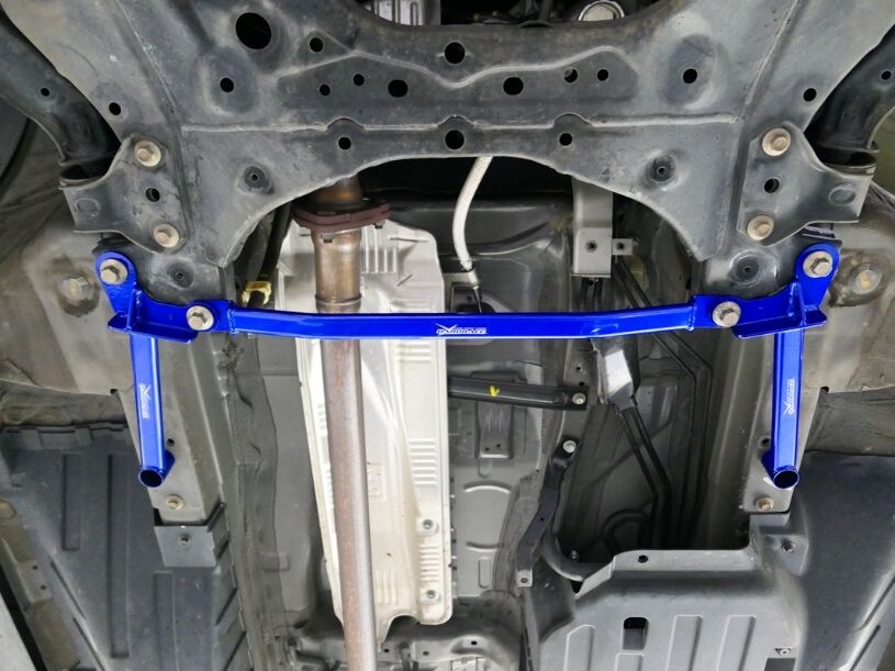 HARDRACE Front Lower Brace are designed to stiffen up the chassis and reduce vehicle chassis flex. This will increase the rigidity of your car during high speed driving and hard cornering. This is why HARDRACE Front Lower Brace can maximizes the performance of the suspension and brings better handling feeling and quicker response.