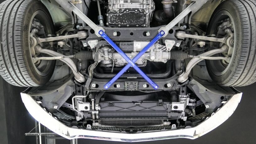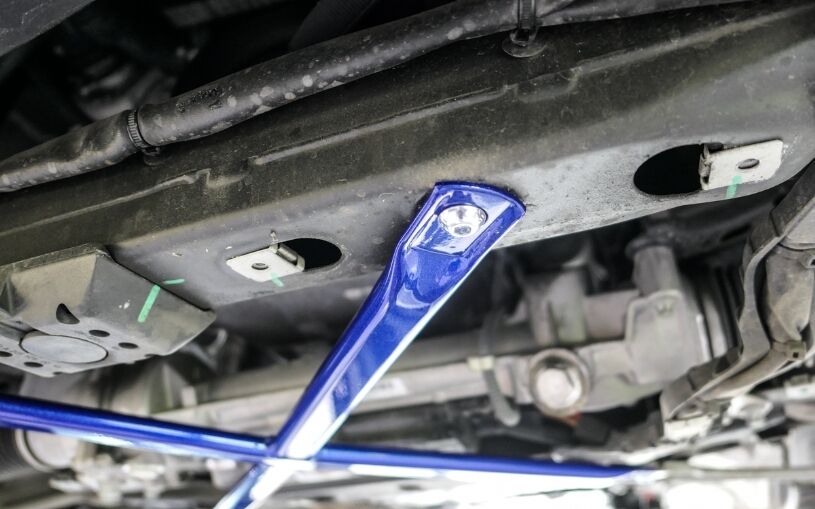 HARDRACE Front Lower Brace are designed to stiffen up the chassis and reduce vehicle chassis flex. This will increase the rigidity of your car during high speed driving and hard cornering. This is why HARDRACE Front Lower Brace can maximizes the performance of the suspension and brings better handling feeling and quicker response.
