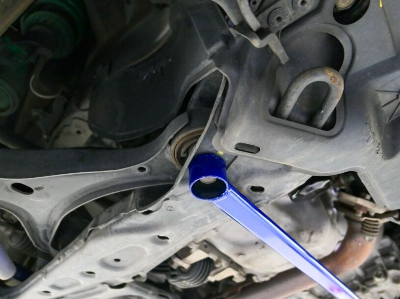 HARDRACE Front Lower Brace are designed to stiffen up the chassis and reduce vehicle chassis flex. This will increase the rigidity of your car during high speed driving and hard cornering. This is why HARDRACE Front Lower Brace can maximizes the performance of the suspension and brings better handling feeling and quicker response.