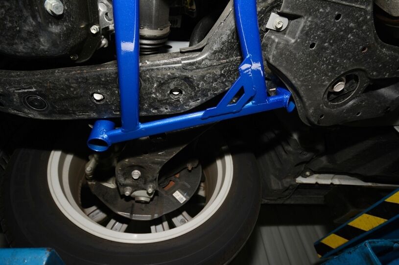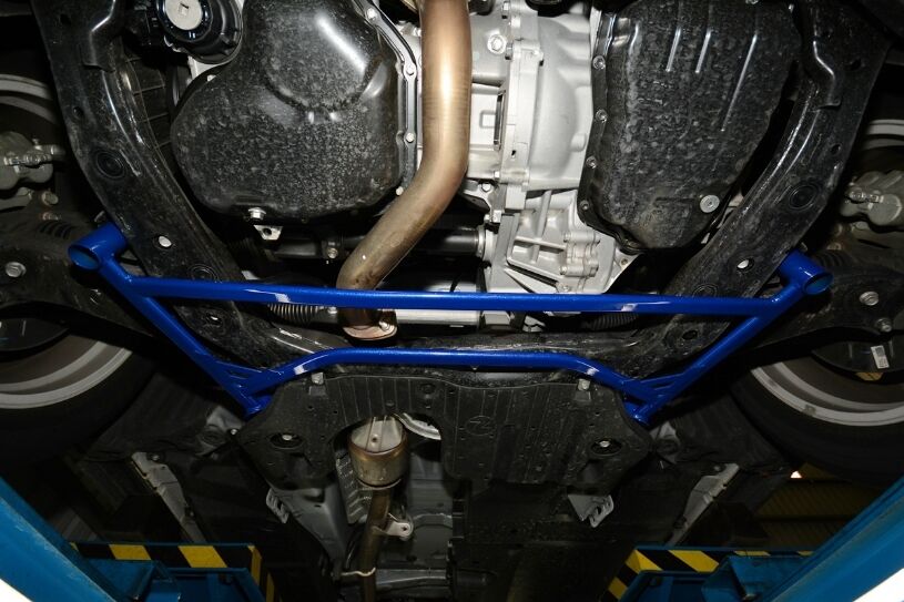 HARDRACE Front Lower Brace are designed to stiffen up the chassis and reduce vehicle chassis flex. This will increase the rigidity of your car during high speed driving and hard cornering. This is why HARDRACE Front Lower Brace can maximizes the performance of the suspension and brings better handling feeling and quicker response.