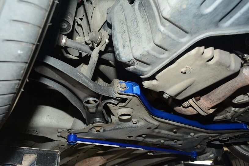 HARDRACE Front Lower Brace are designed to stiffen up the chassis and reduce vehicle chassis flex. This will increase the rigidity of your car during high speed driving and hard cornering. This is why HARDRACE Front Lower Brace can maximizes the performance of the suspension and brings better handling feeling and quicker response.