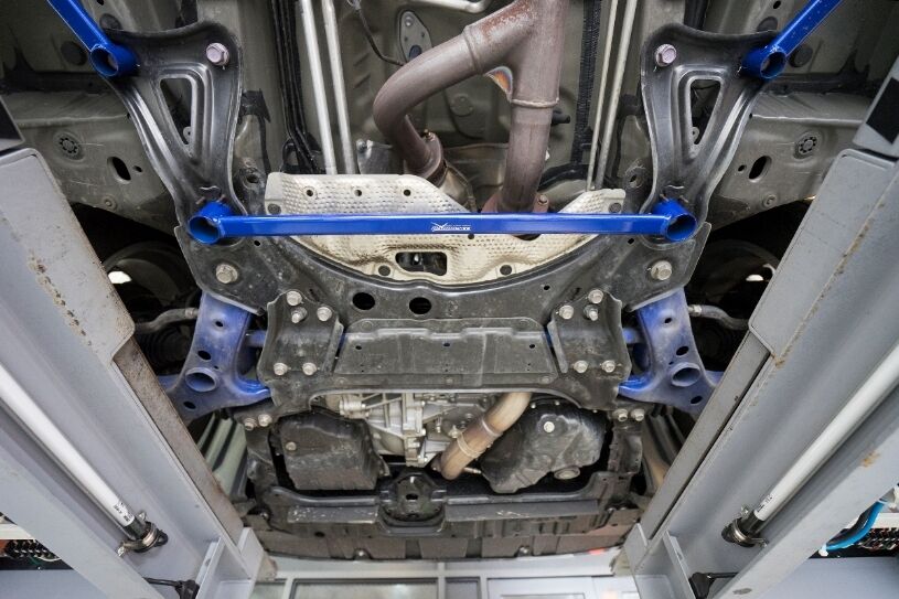 HARDRACE Front Lower Brace are designed to stiffen up the chassis and reduce vehicle chassis flex. This will increase the rigidity of your car during high speed driving and hard cornering. This is why HARDRACE Front Lower Brace can maximizes the performance of the suspension and brings better handling feeling and quicker response.