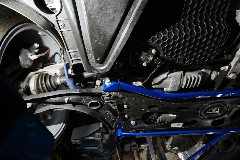 HARDRACE Front Lower Brace are designed to stiffen up the chassis and reduce vehicle chassis flex. This will increase the rigidity of your car during high speed driving and hard cornering. This is why HARDRACE Front Lower Brace can maximizes the performance of the suspension and brings better handling feeling and quicker response.