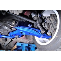 The control arm made with HARDENED steel and compound with hard rubber bushing. A good control arm can regulate the movement of wheels quickly each time you turn or corner.