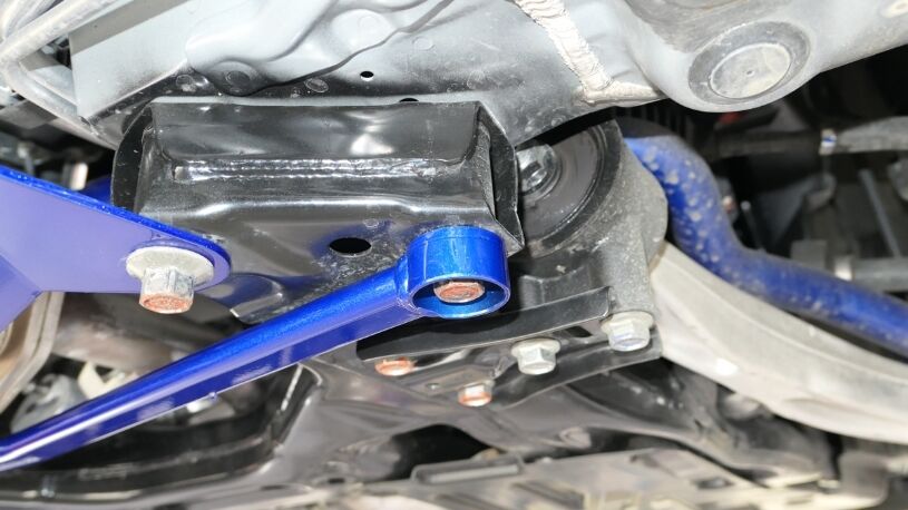 HARDRACE Front Lower-Rear Brace are designed to stiffen up the chassis and reduce vehicle chassis flex. This will increase the rigidity of your car during high speed driving and hard cornering. This is why HARDRACE Front Lower Brace can maximizes the performance of the suspension and brings better handling feeling and quicker response.