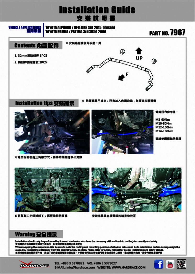 FRONT SWAY BAR TOYOTA, LEXUS, ALPHARD/VELLFIRE, NX, PREVIA/ESTIMA, 15-PRESENT, XR50 06-, AZ10 14-