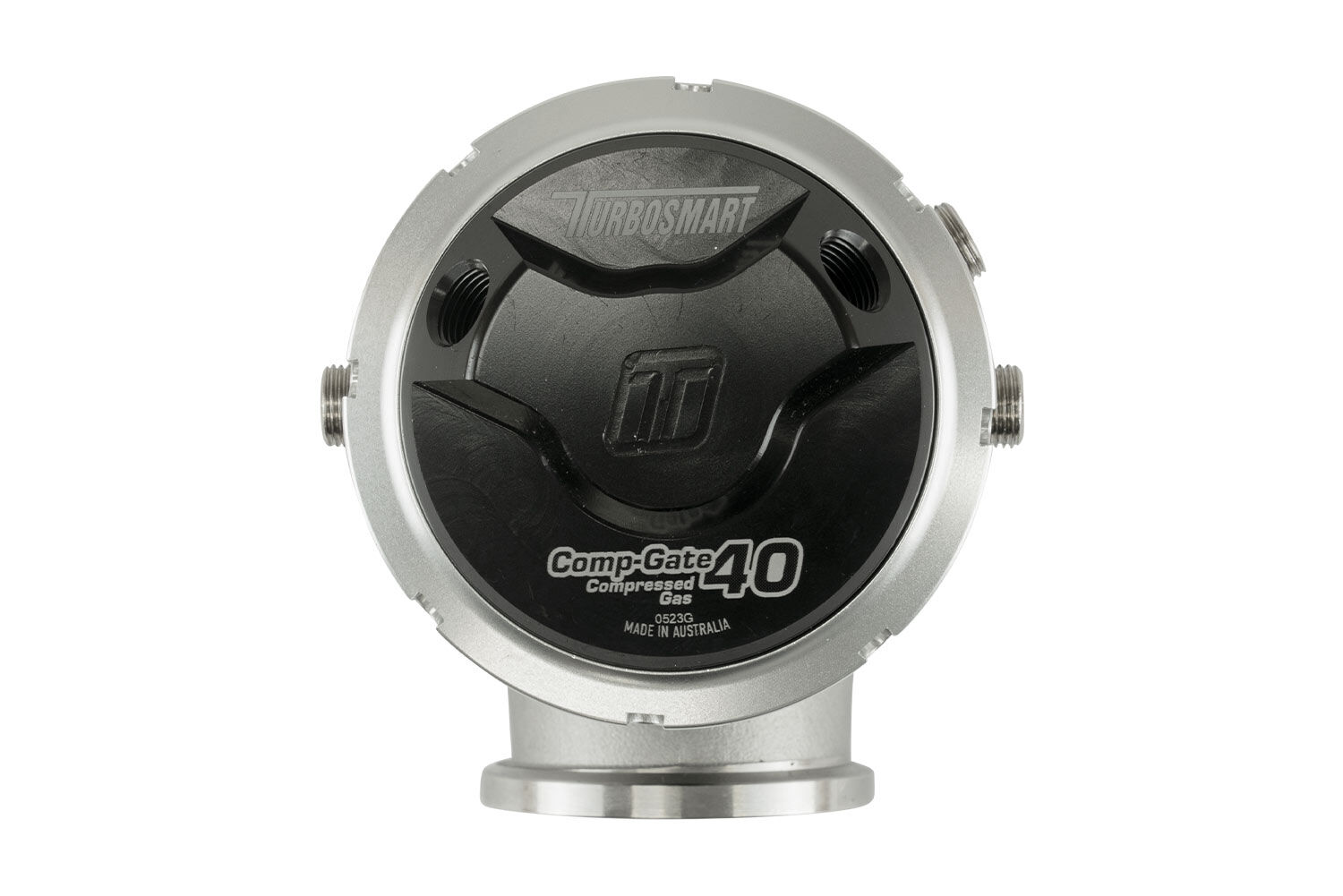 The GenV CompGate40 Compressed Gas external wastegate is a cost effective, high performing external wastegate designed for control strategies that actively bias the top chamber with high pressure for large boost bandwidth operation, such as CO2 drag racing, or compressed air WRC applications.