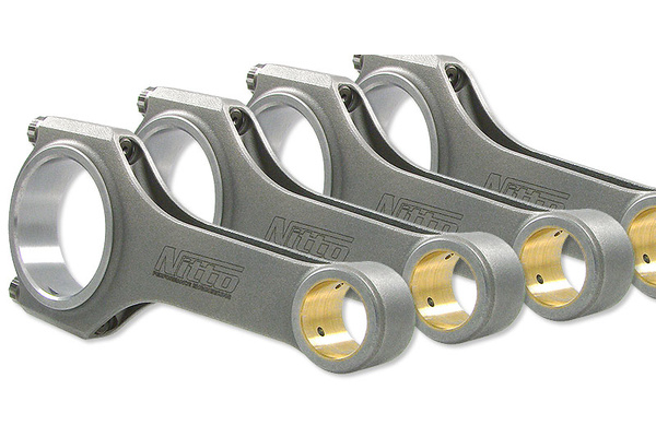 NITTO H-beam connecting rods feature quality ARP rod bolts and silicone bronze wrist pin bushes to ensure reliability. NITTO H-beam connecting rods are for use in applications that require a strengthened link between the crankshaft and piston but do not require the heavy duty link of an I-beam connecting rod.
