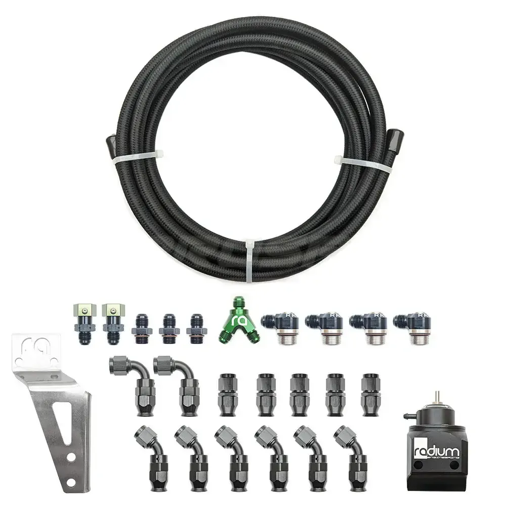Radium Engineering offer an exciting new fuel plumbing option for Subaru owners upgrading to aftermarket fuel rails. These kits offer quality nylon-braided PTFE fuel hose with a range of Billet fittings to plumb your new parallel fuel rail kit.