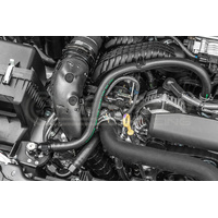 Without making any permanent modifications, the CCV catch can mounts underneath the OEM air intake duct. To retain factory functionality, the CCV catch can runs inline between the crankcase vent (CCV) port and the turbo inlet pipe. At low loads, it experiences atmospheric pressure. However, when the engine is at high load (WOT), the line will experience high flow from the crankcase into the intake system. This would normally lead to oil and sludge accumulation in the air filter intake pipe. The CCV catch can captures this and promotes clean filtered air back into the intake.