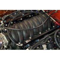 Manufactured with a large 0.69" internal bore, the fuel rails can support all necessary engine power requirements. They are CNC machined from extruded 6063 aluminum, black anodized, and laser etched for a high quality surface finish. All end ports are machined with 8AN ORB (3/4-16 female) threads. The lower center ports can be used for optional adapters and are also tapped with 8AN ORB (3/4-16 female) threads.