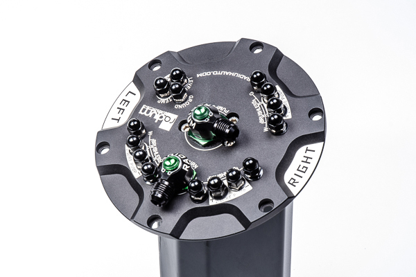 Dump cans are used in motorsports when quick fuel filling pit stops are essential. The main difference between a "dump can" and a common "fuel jug" is the vent architecture. For quick filling, air entering the can must replace the exiting fuel at the same rate. If not, a vacuum will create a flow restriction and produce a "gurgle" or "chug" effect. Fortunately, the large 1.675" OD vent tube comes from the bottom minimizing refueling leaks. The vent tube is also typically used for filling the dump can. Radium Engineering dump cans are blow-molded in USA from high density polyethylene which is safe for all fuel types (leaded gas, unleaded gas, diesel, AV gas, methanol, ethanol, E15, E85, etc.). The external rectangular shape allows for easy storing and securing. The integrated vent handle is comfortable and ergonomic making refueling painless. An anodized billet aluminum cap with a rubber flip vent valve is standard with all dump cans. The dump can comes preassembled with a sealing cap for the molded 1" NPT male spout. If cut, the pour spout can be enlarged from 1.25" to 2.25" to 3" OD. For more spout info and options, see specifications. NOTE: To utilize all 8 gallons, it is recommended to use the preassembled standard rubber flip vent valve. This will drastically slow the filling process but prevent any fuel from accidentally making its way out of the vent when the dump can is completely full. The entire vent cap can be removed for quick filling, but some fuel loss may occur. 20-0497-00 QUICK FILL DUMP CAN, 8 GALLON, STANDARD FILLER This option works with all OEM vehicle fillers. But unlike typical fuel jugs, the Radium Engineering dump can fills 67% faster thanks to the large vent design. Spout Outer Diameter: 0.84" Spout Insertion Length: 3" Total Height: 38" (+/-1")