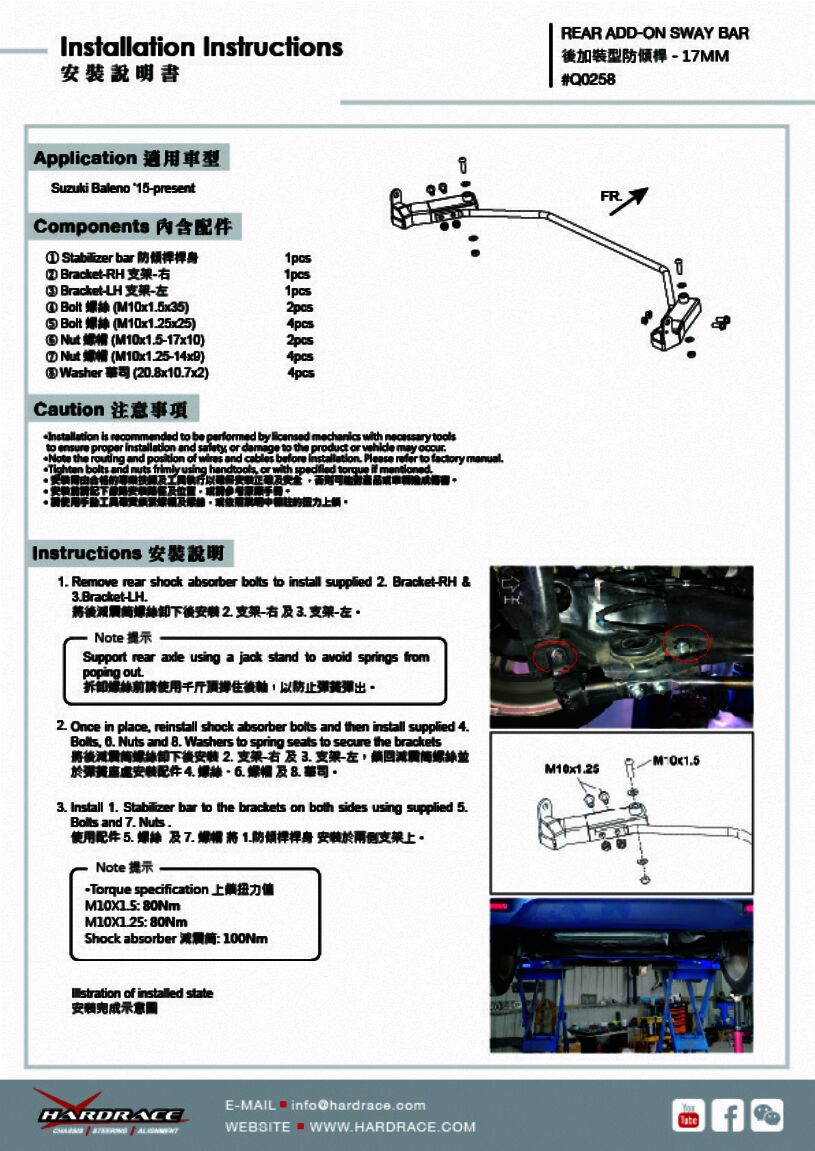 REAR ADD-ON SWAY BAR SUZUKI, BALENO, 15-PRESENT