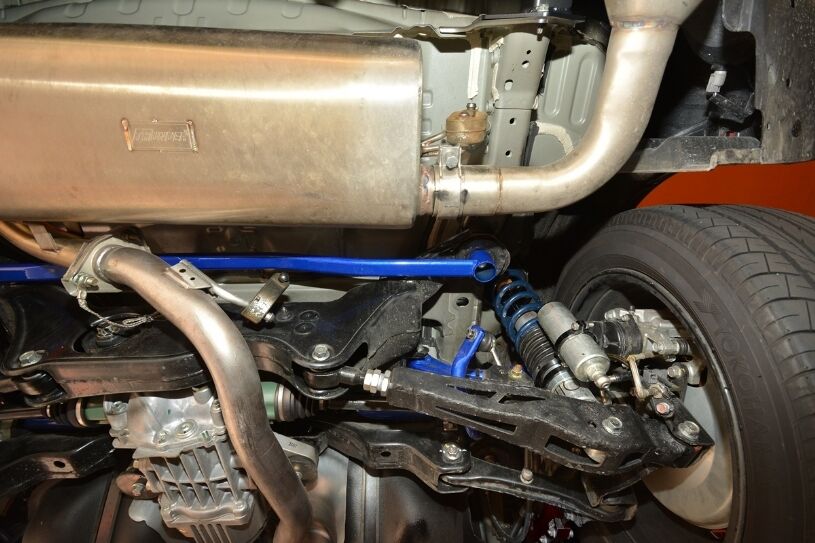 HARDRACE Rear Lower Brace are designed to stiffen up the chassis and reduce vehicle chassis flex. This will increase the rigidity of your car during high speed driving and hard cornering. This is why HARDRACE Rear Lower Brace can maximizes the performance of the suspension and brings better handling feeling and quicker response.