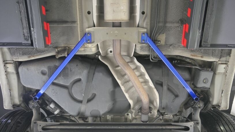 HARDRACE Rear Lower Brace are designed to stiffen up the chassis and reduce vehicle chassis flex. This will increase the rigidity of your car during high speed driving and hard cornering. This is why HARDRACE Rear Lower Brace can maximizes the performance of the suspension and brings better handling feeling and quicker response.