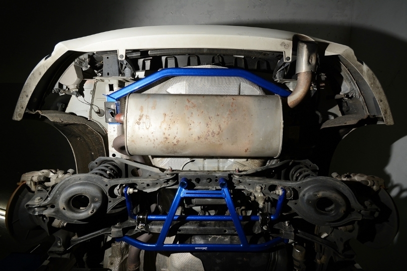 HARDRACE Rear Sub-frame Brace are designed to stiffen up the chassis and reduce vehicle chassis flex. This will increase the rigidity of your car during high speed driving and hard cornering. This is why HARDRACE Rear Sub-frame Brace can maximizes the performance of the suspension and brings better handling feeling and quicker response.