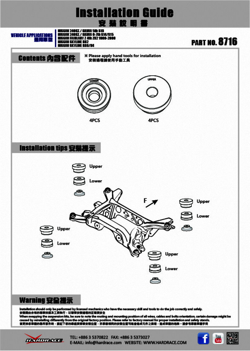 HARDRACE rear subframe solid bushing s a best choice to reduce the subframe movement and make a dramatic improvement in ride. They fill the gap of the subframe bushings dramatically firming up the subframe