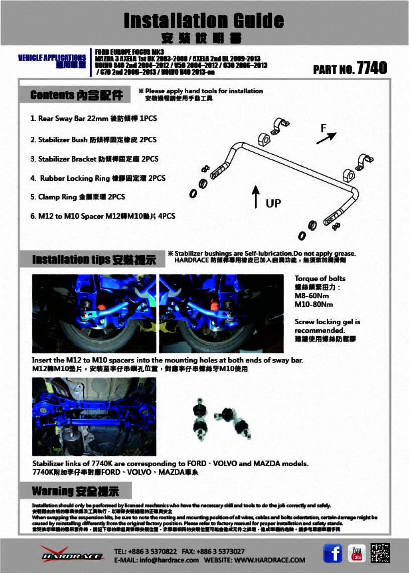 Sway Bar affects the handling and the carƒ??s over steer and under steer. It ties the lower suspension links together across the front or back, will keep your car flat in turns instead of leaning over to one sideHARDRACE sway bars provide better control especially at high speeds cornering