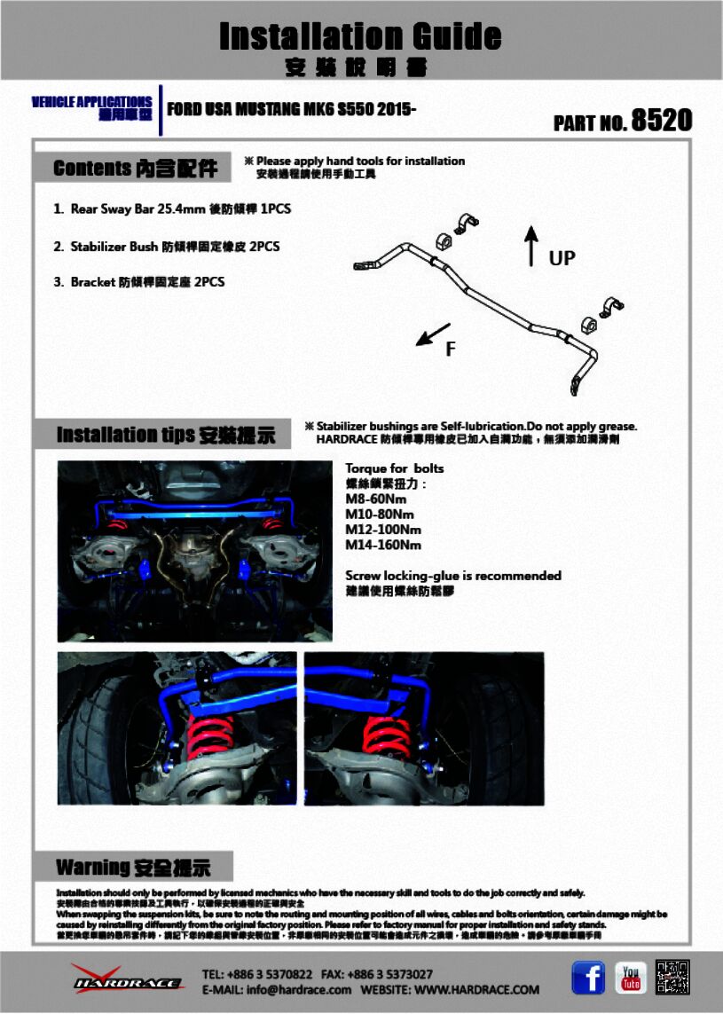 Sway Bar affects the handling and the carƒ??s over steer and under steer. It ties the lower suspension links together across the front or back, will keep your car flat in turns instead of leaning over to one sideHARDRACE sway bars provide better control especially at high speeds cornering