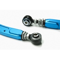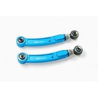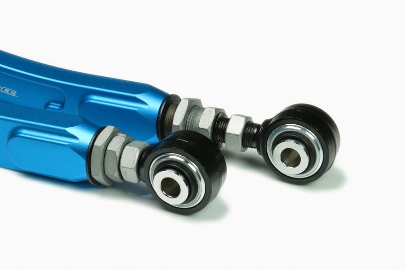The camber kit allows fine adjustments to the rear end camber setting of the vehicle. It can either help improve cornering grip or get your car back to original alignment specs after lowering. The arms are made of high-strength CNC aluminum with anodized surface to offer high durability, strength and yet remain light-weight. With premium quality pillow ball bushings equipped, they also provide more precise and solid handling response over the factory components.